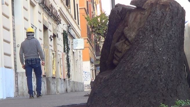 Diesem Künstler aus Rom mangelte es an Arbeitsmaterial. Jetzt verziert er die Straßen mit seinen Baumskulpturen. Die Anwohner lieben und die Behörden dulden es.