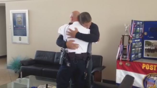 Als Kleinkind hat ihn ein Polizist vor dem Ertrinken gerettet. Knapp 20 Jahre später trifft Chris Jones seinen Retter wieder. Eine rührende Szene.
