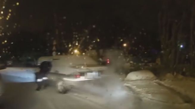 In Kandalakscha, Russland, fällt Beamten plötzlich ein Autofahrer auf, der sichtlich betrunken wirkt. Als ein Beamter den Mann stoppen will, tritt der aufs Gas. Doch der Polizist lässt sich davon nicht abwimmeln und hakt sich im offenen Seitenfenster des Autos ein.