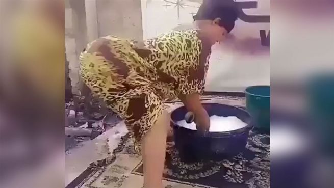 Diese drei Frauen waschen ihre Wäsche auf eine sehr spezielle Art. Sie wackeln dabei nämlich ordentlich mit ihren umfangreichen Hintern.