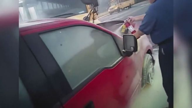 Nach einem Unfall in in North Carolina konnten Polizei und freiwillige Helfer mit vereinter Kraft einen Mann aus seinem brennenden Auto befreien. Die Bodycam eines Polizisten filmte die Rettungsaktion.
