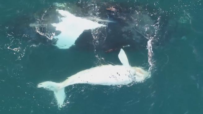 Seltene Aufnahmen: Drohne filmt weißes Wal-Baby