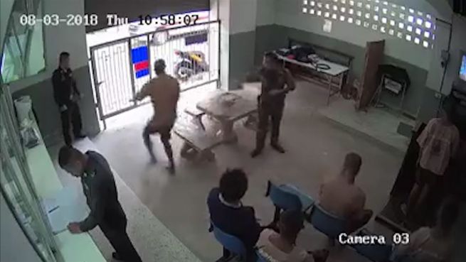Einer lässt das Schloss fallen, einer hat nicht richtig aufgepasst und schon reißen die Gefangen aus. Diese thailändischen Polizisten müssen ihrem Chef wohl gute Gründe nennen, um aus dieser Aktion straffrei heraus zu kommen.