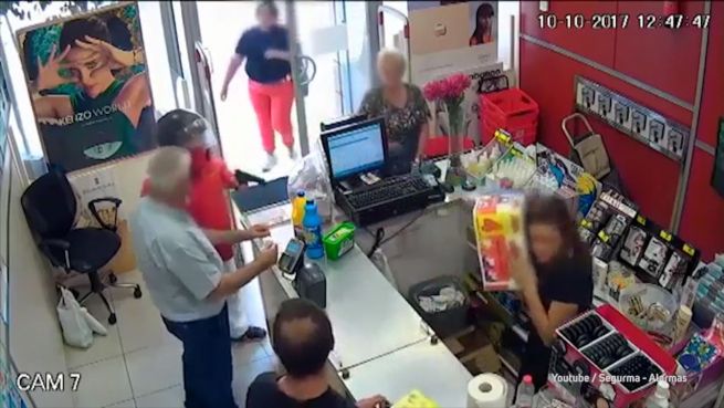 Mit dieser temperamentvollen Kundin hat ein Räuber in Spanien nicht gerechnet. Als er ein kleines Geschäft ausrauben will, sieht eine Dame rot - und setzt sich beherzt ein.