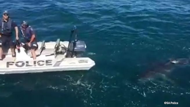 Normalerweise verfolgt die Polizei statt verfolgt zu werden - vor der australischen Südküste hat Hai Noah den Spieß kurzerhand umgedreht. Er blieb erst einem Touristenboot und dann der Polizei dicht auf den Fersen. Glücklicherweise blieb es bei diesem Stalking und niemand wurde verletzt.