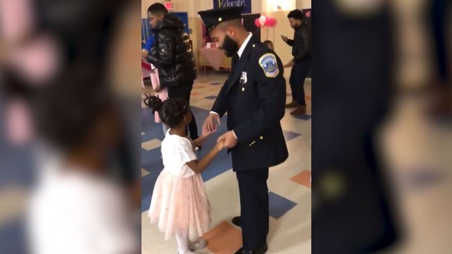 Ein Polizist aus Washington DC hat seine Pause genutzt, um seiner Tochter eine Freude zu bereiten. Auf einer Schulveranstaltung erobern die beiden beim Vater-Tochter-Tanz das Parkett.