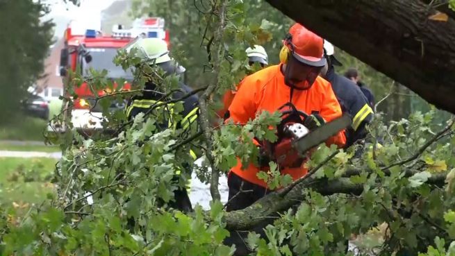 Sturm, Regen und fallende Temperaturen sorgen für Chaos im Norden von Deutschland. Die Feuerwehr ist mit Kettensägen im Dauereinsatz und warnt in Hamburg Bewohner davor, ihre Häuser zu verlassen.