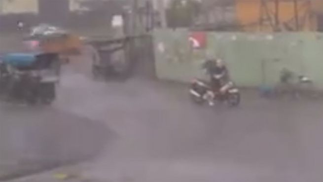 In Vietnam herrscht aktuell ein Tropensturm, der mit bis zu 100 km/h um sich schlägt. Eine Frau hatte dennoch das Gefühl, sie könne bei diesem Unwetter mit dem Moped auf die Straße. Weit kam sie jedoch nicht.