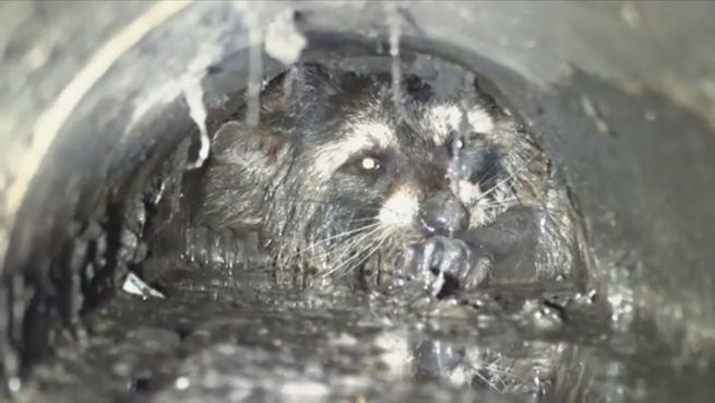 Sieben Stunden dauerte die Rettung eines Waschbären, der sich im US-amerikanischen Santa Cruz in ein Abflussrohr verirrt hatte. Doch seine Befreiung kam leider zu spät.