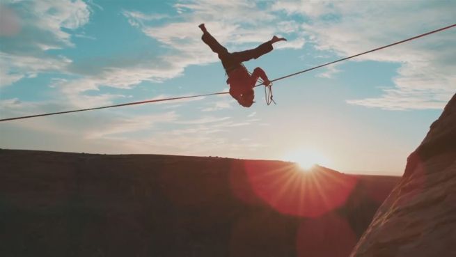 Atemberaubende Bilder aus einer Wüste des US-Bundesstaates Utah. Jedes Jahr treffen sich hier die verrücktesten Sportler, um ihre extremen Passionen in den Schluchten auszuleben. In einer Höhe von 400 Metern.