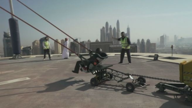 Für Werbezwecke schießt eine Shuttleservice-App angeblich einfach mal einen Mitarbeiter per Riesen-Schleuder von einem Hochhaus in Dubai zum Nächsten. Hoffentlich hat der den Flug gut überstanden.