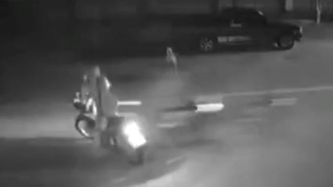 Eine Frau auf einem Motorrad hält an, um zu telefonieren. Doch dann rast ein anderes Motorrad mit voller Wucht in sie hinein. Eine Überwachungskamera zeigt diesen Crash mit glücklichem Ende.
