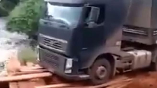 Es sind Bilder, bei denen man unwillkürlich den Atem anhält. Ein Lkw-Fahrer aus Brasilien möchte eine Brücke überqueren, die nur aus ein paar Holzbalken besteht. Das kann doch nur in die Hose gehen, oder?