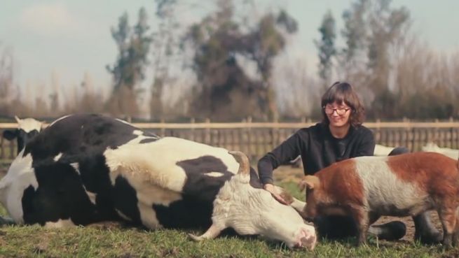 Eine Tierschutzorganisation in Chile rettet Tiere vor dem Schlachter, auch diesen knuddelfreudigen Stier. Doch ein freches Schwein will ebenfalls von seiner Pflegerin ein paar Streicheleinheiten abbekommen.