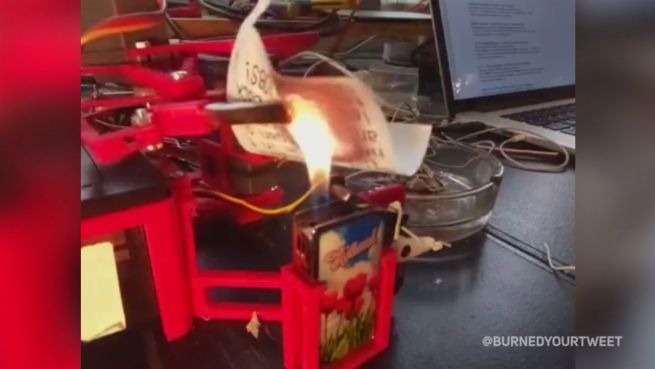 Mit dieser verrückten Tweet-Verbrenn-Maschine zeigt jemand seine eindeutige Meinung zu Donald Trumps Twitter-Aktivitäten. Aber wer steckt hinter dem Video?