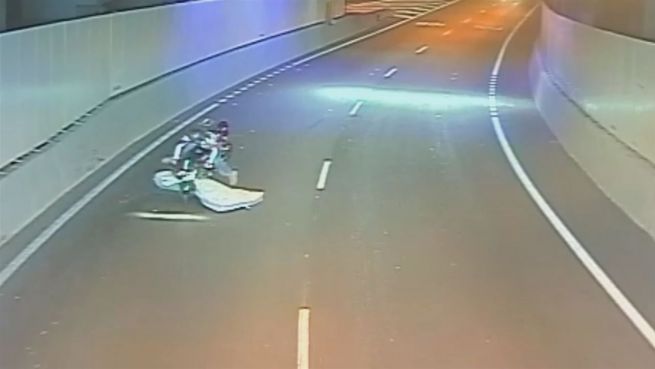 Dieser Motorradfahrer in Brisbane, Australien, hatte großes Glück. Der Biker fuhr gerade durch einen Tunnel, als ein LKW auf der anderen Spur seine Ladung verlor. Bei der handelte es sich um nichts anderes, als eine Matratze.