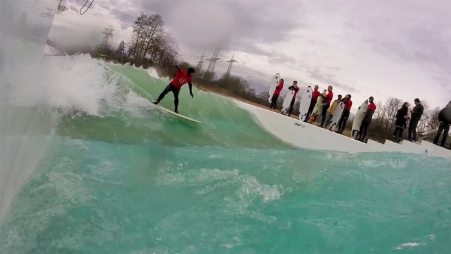 Abseits von Stränden und Ozeanen; Wellensurfen direkt vor der Haustür, das ist weltweit nur auf einem einzigen Baggersee möglich - und zwar im nordrhein-westfälischen Langenfeld. Eine schwimmende Anlage türmt 1,60 Meter hohe Wellen auf.