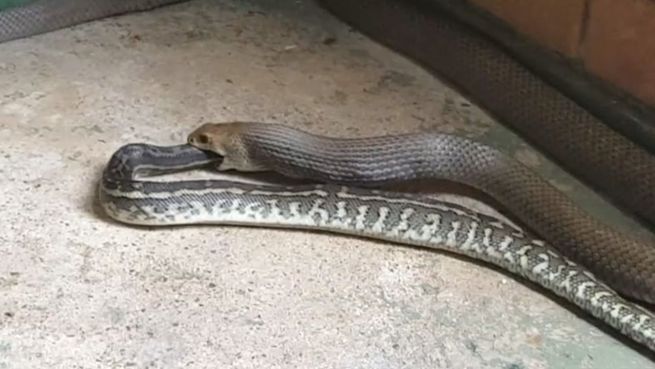 Diese Giftschlange in Australien kennt keine Grenzen, wenn sie so richtig hungrig ist. Da wird auch eben mal ein Artgenosse verspeist. Hauptsache es sättigt.