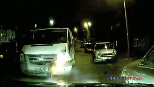In Großbritannien lieferte sich die Polizei eine Verfolgungsjagd mit zwei Männern in einem weißen Van. Doch der Fahrer des Fluchtwagens dreht den Spieß plötzlich um und rast geradewegs auf das Polizeiauto zu.