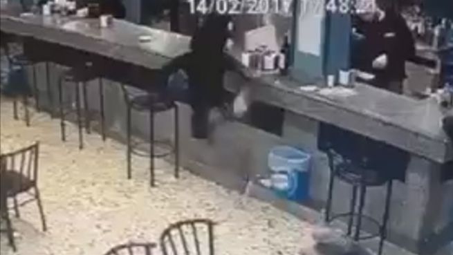 Eine Kellnerin mit wirklich sportlichem Geschick zeigt in diesem Video, was sie kann. Eine Überwachungskamera filmte sie dabei, wie sie eine Plastikflasche trickreich in einen Mülleimer befördert.
