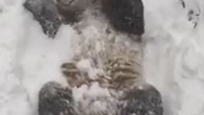 Winterspaß: Panda rollt und trollt sich im Schnee