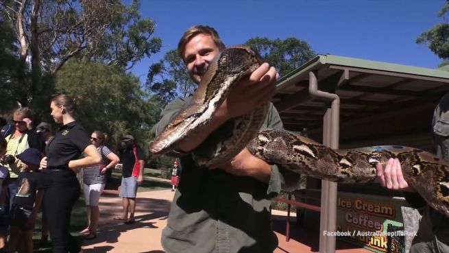 Er gehört zu den längsten Netzpythons der Welt. Die Schlange mit dem martialischen Namen Monster ist ein wahres Prachtexemplar. Mindestens fünf Menschen werden gebraucht, um ihn auf die Waage zu bringen.