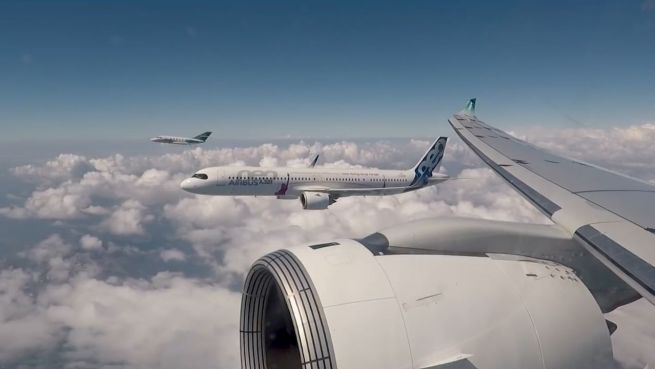 Wenn große Passagierflugzeuge von Airbus zum Formationsflug starten, sind spektakuläre Aufnahmen garantiert. So nah fliegen die Giganten der Lüfte sonst nie nebeneinander.