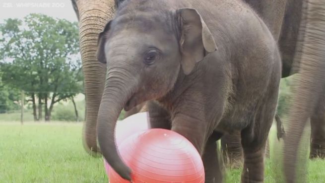Zum 1. Geburtstag: Baby-Elefant bekommt 'Fußball'